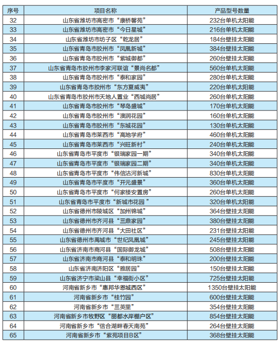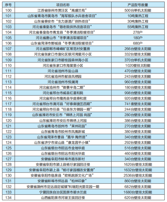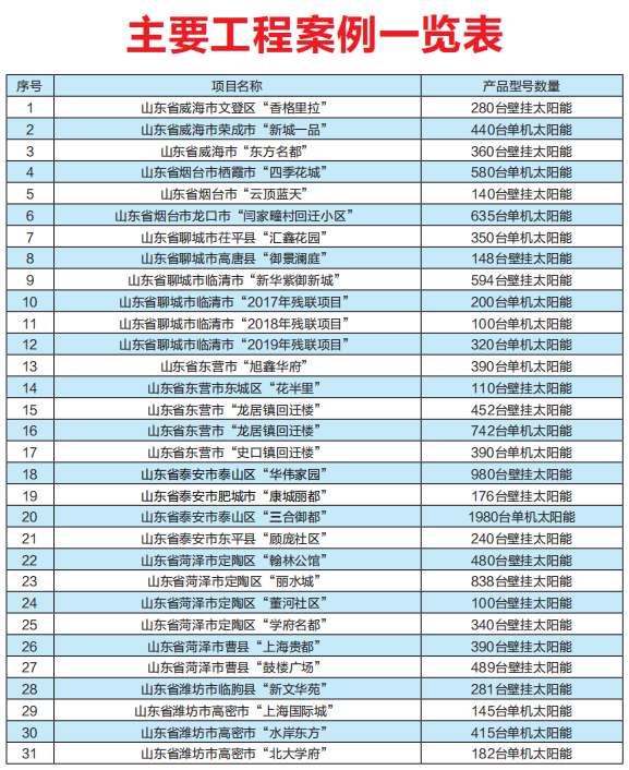 太陽能熱水單機(jī)與陽臺(tái)壁掛工程一覽表